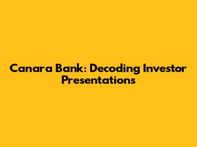 Canara Bank: Decoding Investor Presentations