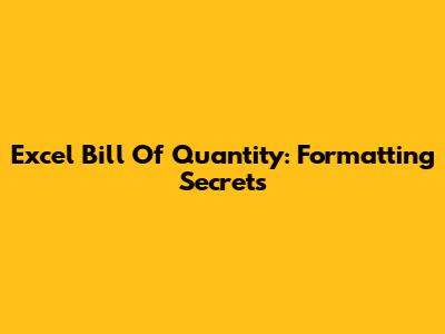 Excel Bill Of Quantity: Formatting Secrets