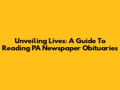 Unveiling Lives: A Guide To Reading PA Newspaper Obituaries