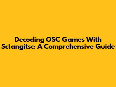 Decoding OSC Games With Sclangitsc: A Comprehensive Guide