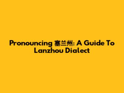 Pronouncing 塞兰州: A Guide To Lanzhou Dialect