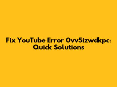 Fix YouTube Error 0vv5izwdkpc: Quick Solutions