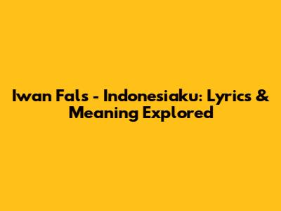Iwan Fals - Indonesiaku: Lyrics & Meaning Explored