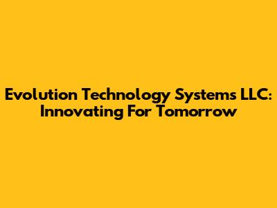Evolution Technology Systems LLC: Innovating For Tomorrow