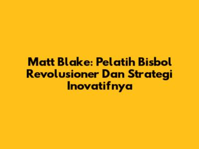 Matt Blake: Pelatih Bisbol Revolusioner Dan Strategi Inovatifnya