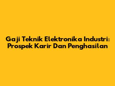 Gaji Teknik Elektronika Industri: Prospek Karir Dan Penghasilan