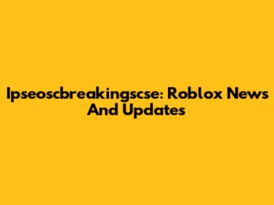 Ipseoscbreakingscse: Roblox News And Updates