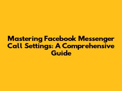 Mastering Facebook Messenger Call Settings: A Comprehensive Guide