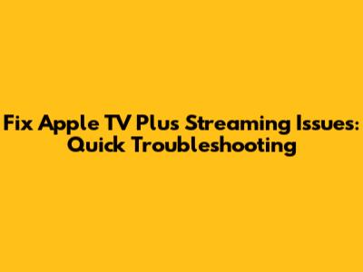 Fix Apple TV Plus Streaming Issues: Quick Troubleshooting