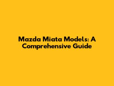 Mazda Miata Models: A Comprehensive Guide