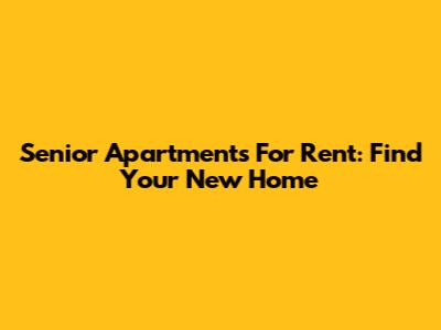 Senior Apartments For Rent: Find Your New Home