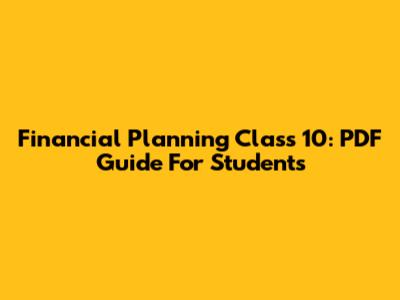 Financial Planning Class 10: PDF Guide For Students