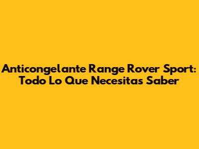 Anticongelante Range Rover Sport: Todo Lo Que Necesitas Saber