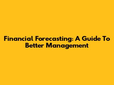 Financial Forecasting: A Guide To Better Management
