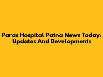 Paras Hospital Patna News Today: Updates And Developments