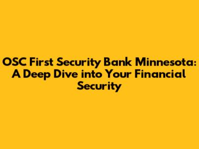 Hey everyone, let's talk about OSC First Security Bank in Minnesota! It's a name you might have come across while managing your finances, looking for a new bank, or simply researching financial institutions in the North Star State. But what exactly makes this bank tick? Why is it relevant? And most importantly, how secure is your money with them? Buckle up, because we're about to dive deep into OSC First Security Bank Minnesota, covering everything from its services and security measures to what makes it stand out in the crowded financial landscape. We will cover the different aspects of the bank and tell you why you should consider it!