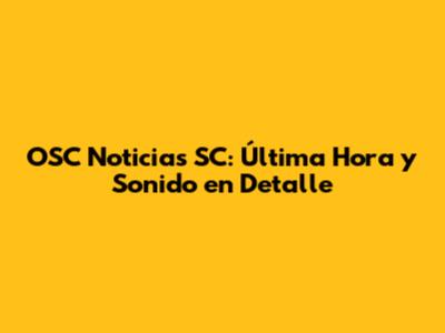 OSC Noticias SC: Última Hora Y Sonido En Detalle
