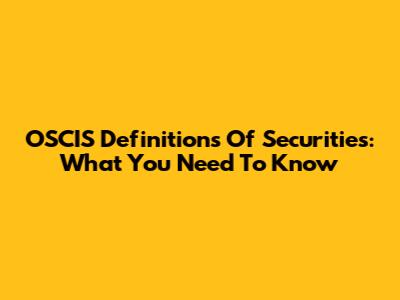 OSCIS Definitions Of Securities: What You Need To Know