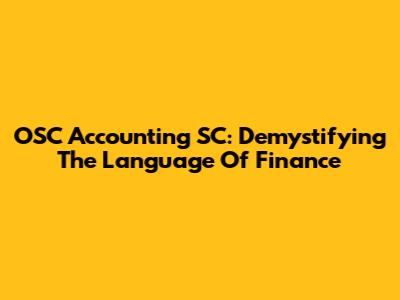 OSC Accounting SC: Demystifying The Language Of Finance