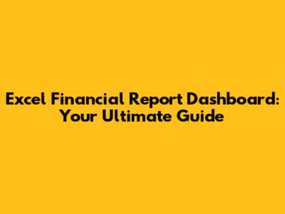 Excel Financial Report Dashboard: Your Ultimate Guide