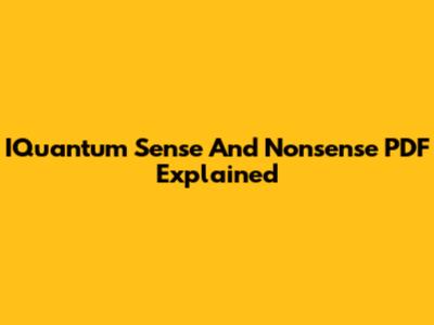 IQuantum Sense And Nonsense PDF Explained