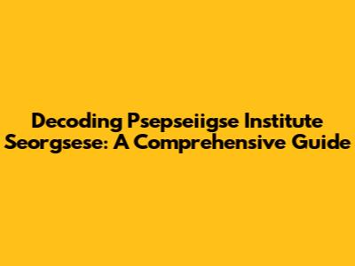 Decoding Psepseiigse Institute Seorgsese: A Comprehensive Guide