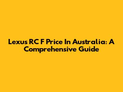 Lexus RC F Price In Australia: A Comprehensive Guide