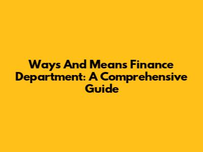 Ways And Means Finance Department: A Comprehensive Guide