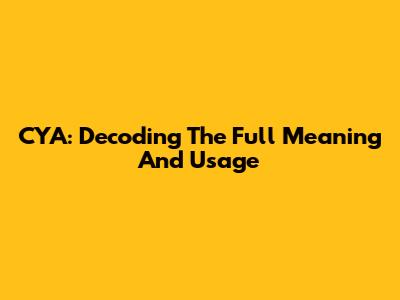 CYA: Decoding The Full Meaning And Usage