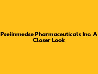 Pseiinmedse Pharmaceuticals Inc: A Closer Look
