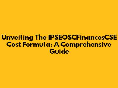 Unveiling The IPSEOSCFinancesCSE Cost Formula: A Comprehensive Guide
