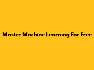 Master Machine Learning For Free