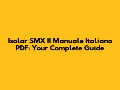 Isolar SMX II Manuale Italiano PDF: Your Complete Guide