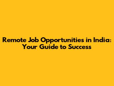 Remote Job Opportunities In India: Your Guide To Success