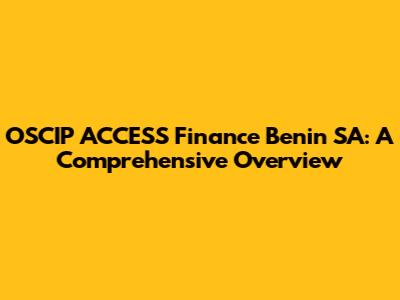 OSCIP ACCESS Finance Benin SA: A Comprehensive Overview