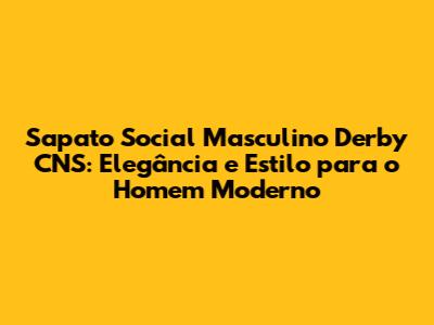Se você, caro leitor, está em busca de um calçado que combine sofisticação, conforto e versatilidade, o sapato social masculino Derby CNS pode ser a escolha perfeita. Este modelo, conhecido por sua elegância atemporal e design diferenciado, é um must-have no guarda-roupa de qualquer homem que preza por um visual impecável em diversas ocasiões. Seja para o trabalho, eventos sociais ou mesmo para um encontro especial, o Derby CNS oferece o equilíbrio ideal entre estilo e bem-estar.