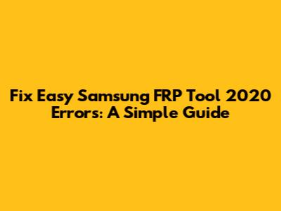Fix Easy Samsung FRP Tool 2020 Errors: A Simple Guide