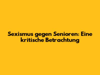 Sexismus Gegen Senioren: Eine Kritische Betrachtung