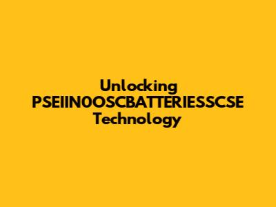 Unlocking PSEIIN0OSCBATTERIESSCSE Technology