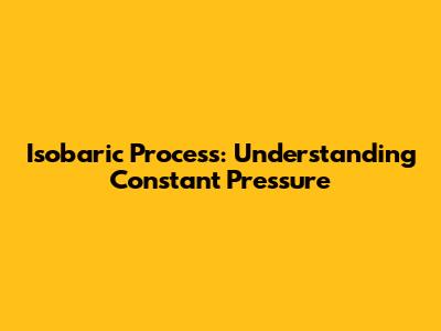 Isobaric Process: Understanding Constant Pressure