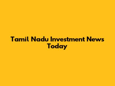 Tamil Nadu Investment News Today: Latest Updates