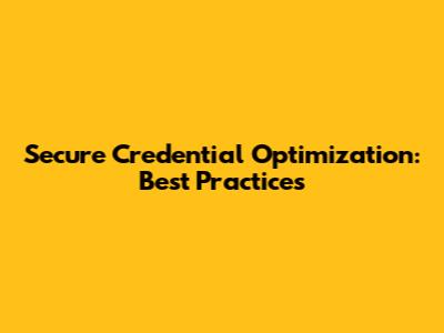Secure Credential Optimization: Best Practices