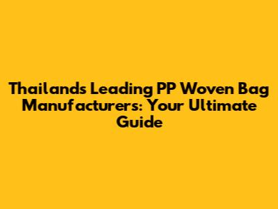 Alright, let’s get down to the good stuff: the top PP woven bag manufacturers in Thailand. Thailand has a ton of companies that are leading the way in this industry, known for their quality, innovation, and customer service. Picking the right manufacturer is super important because it directly affects the quality and cost of your packaging. We'll explore some of the best, what they specialize in, and what makes them stand out from the crowd. We'll be focusing on a few key factors, including their production capacity, the types of products they offer, the technologies they use, and their overall reputation in the market. This way, you can get a good idea of what each manufacturer brings to the table and find the perfect match for your needs.