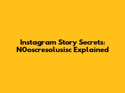Instagram Story Secrets: N0oscresolusisc Explained