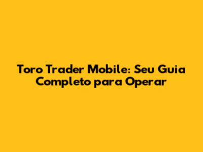 Toro Trader Mobile: Seu Guia Completo Para Operar