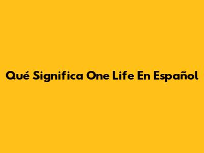 Qué Significa 'One Life' En Español