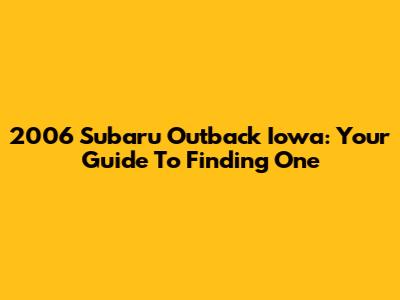 2006 Subaru Outback Iowa: Your Guide To Finding One