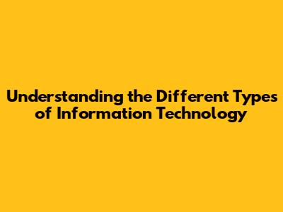 Understanding the different types of information technology is crucial for navigating the ever-evolving digital landscape. From the tangible hardware that powers our systems to the intangible software that drives them, each component plays a vital role in the overall IT infrastructure. Networking connects us, data management informs us, and cybersecurity protects us. Whether you're an aspiring IT professional or a business leader seeking to leverage technology, a solid grasp of these core concepts will empower you to make informed decisions and thrive in the digital age. By staying informed and adaptable, you can harness the power of IT to achieve your goals and drive success.