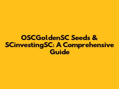 OSCGoldenSC Seeds & SCinvestingSC: A Comprehensive Guide