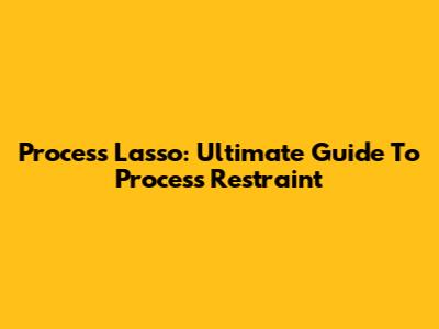 Process Lasso: Ultimate Guide To Process Restraint